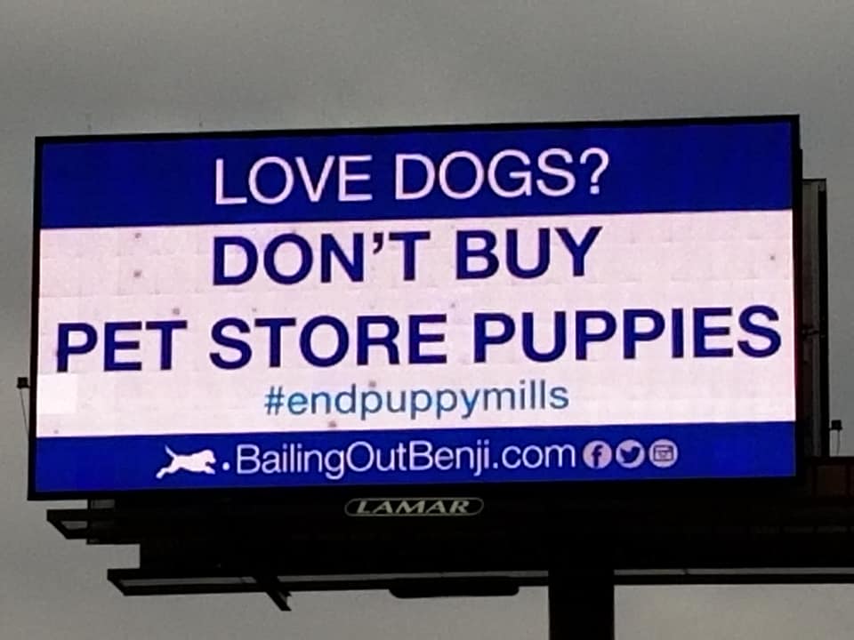 We are also putting billboards up in strategic areas across the country. These billboards will be placed near stores that are selling puppies from puppy mills.