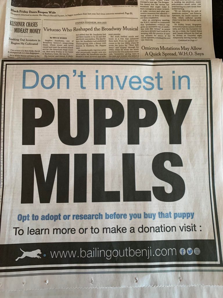 Bailing Out Benji is one of the most effective animal welfare organizations in the United States that is devoted solely to ending the cruelty inside of puppy stores, puppy mills, kitten mills and even small animal mills. Our approach to this is unlike any other.