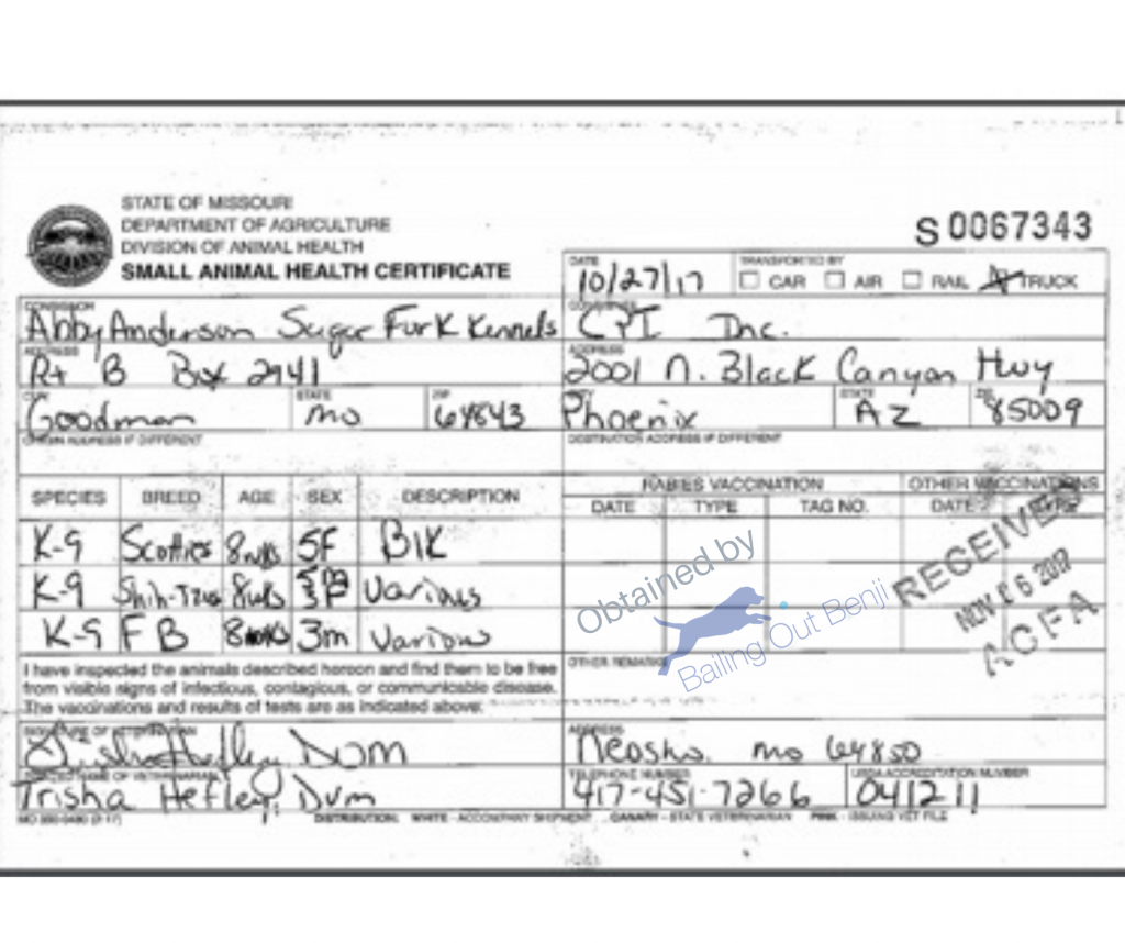One of the thousands of CVIs that Bailing Out Benji obtains that help us trace puppies as they move from puppy mill to pet store.