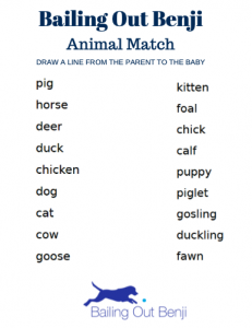 To Print: Animal Matching Worksheet