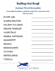 ANIMAL WORD SCRAMBLE: