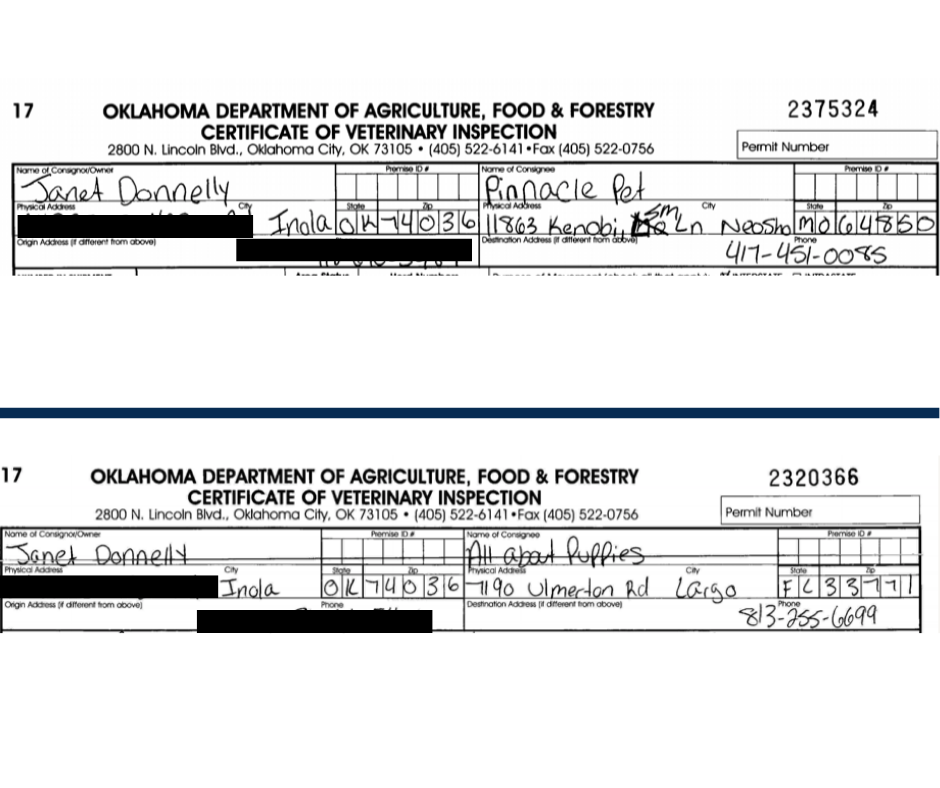 At this time, Boondogs Rescue is not an active 501c3, so no donations are tax deductible. They have solely taken steps to become an Oklahoma state licensed rescue. In the aforementioned press release, Petland did say that “The relationship with Boondogs Rescue began during the onset of the COVID-19 pandemic when Oklahoma Petland stores donated truckloads of dog food to Boondogs Rescue. Both organizations are grateful for the opportunity to further develop the relationship.” According to the documents we obtained from the state of Oklahoma, Donnelly first applied to be a rescue on August 4, 2021- more than a year and a half after the start of the pandemic.