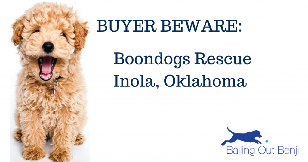 Except that local rescue was founded by a USDA commercial dog breeder in Oklahoma. A dog breeder that also sells puppies to pet stores across the country. Janet Donnelly of Inola, Oklahoma is the owner of both her breeding facility and the newly formed Boondogs Rescue.