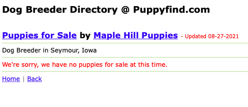 We are certain that Maple Hill Puppies will wind up on the HSUS Horrible Hundred Puppy Mill list in 2022.