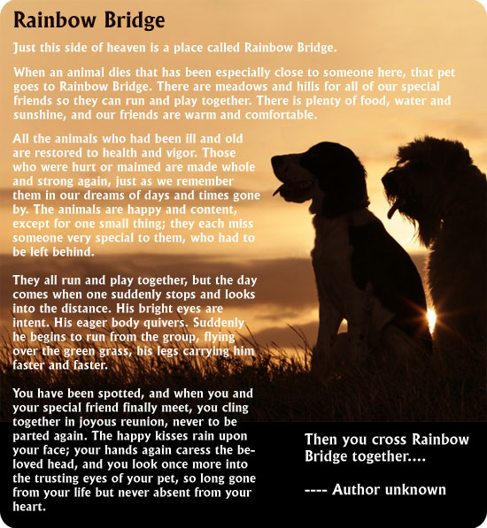 Depression occurs as a reaction to the changed way of life created by the loss. The bereaved person feels intensely sad, hopeless, drained and helpless. The pet is missed and thought about constantly.5. ACCEPTANCE- Acceptance comes when the changes brought upon the person by the loss are stabilized into a new lifestyle. The depth and intensity of the mourning process depends on many factors. The age of the owner, circumstances surrounding the death, relationship of the animal to the owner and to other family members, are all significant. Recently experiencing the death of a significant person in the owner’s life can also affect how the pet’s death is handled. Usually, children recover more quickly, while the elderly take the longest. Sometimes, the death of a pet will finally enable the bereaved to mourn the loss of a person, whose death had not yet been accepted.