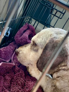 She described how he stared at them from his crate just trembling with fear. As they took him from the crate and placed him on the grass, his little paws were rough and sore and his eyes were so sad and vacant.