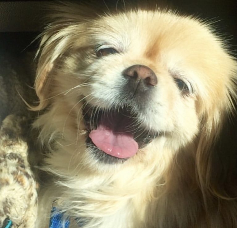 Nutmeg looked terrified and sad and having grown up with Pekingese, Liz felt a connection. She drove three hours to meet her. Nutmeg had arrived at NMDR only two weeks prior and was rescued with other Pekingese. When Liz got to their kennel, all the Pekingese were visibly scared, but still eager to come to the front of the kennel and see her, everyone, but Nutmeg.