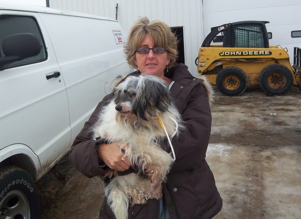 In 2008, I was at an auction doing a story on the protest. The protestors told me to go in the barn and see why they were protesting. I did and 3 plus hours later, came out with the oldest dog there. We changed each other’s lives forever.