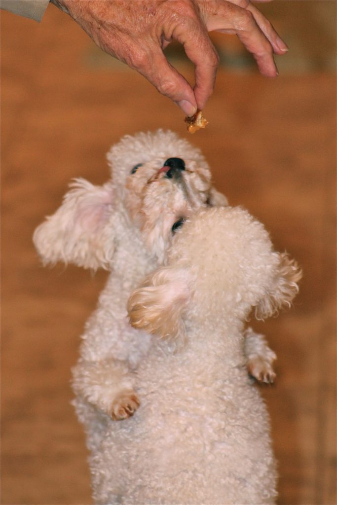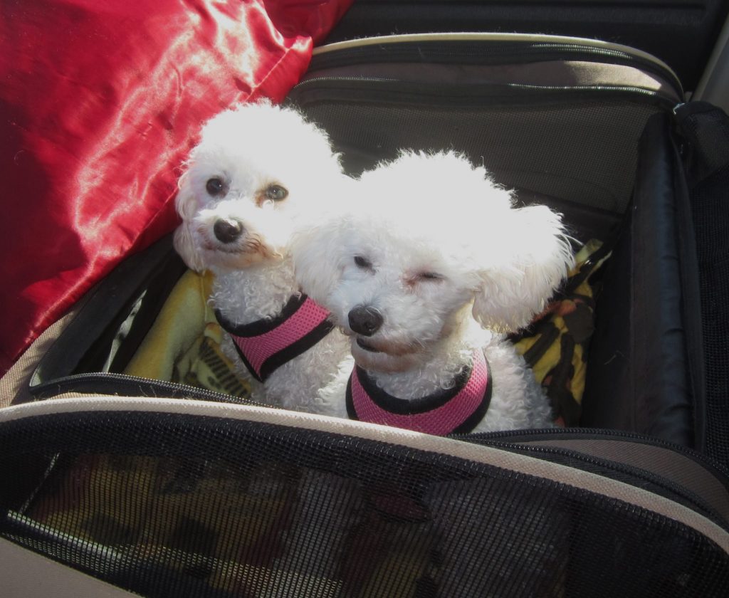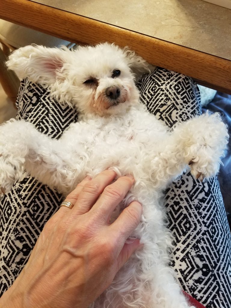 Between the girls’ first mom and her rescued poodles and Lisa’s pack, Trixie and Trudie have had many teachers to help them acclimate to the good life. Lisa said both girls are very obedient and LOVE to go for car rides. Lisa’s Bichon, Frida, was a wonderful mother figure to them and to all the dogs who came through the house. She offered a calmness to the others’ anxieties and with Frida’s passing that is still sadly missed today.