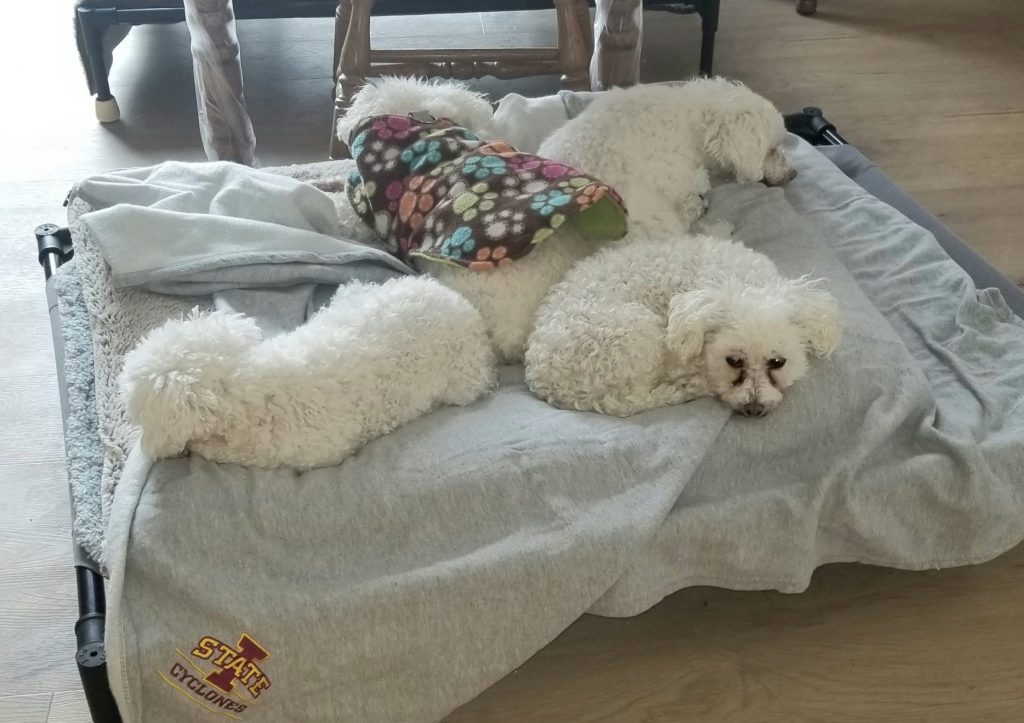 Lisa wasn’t new to the struggles of puppy mill survivors. Trixie and Trudie joined her Bichons, Frida and Heidi, who were also rescued from a large USDA breeder in Wisconsin. As well as little Lucy, a miniature Poodle who came from a puppy mill in Missouri.