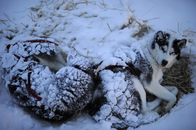 “When I traveled to work for a champion Iditarod and touring kennel in Alaska, I found that over two hundred dogs lived in dilapidated wooden dog houses and plastic barrels, without straw. Even though the temperatures were below zero at night, the few elderly dogs that were present received no bedding or extra care. They slowly crawled out of their dog houses each morning, arthritic and constantly growing thinner from the cold. Poorly constructed and maintained houses are bad because they provide little to no warmth for the dog. Temperatures are bad enough in Alaska, but wind chill factors make it even worse.”