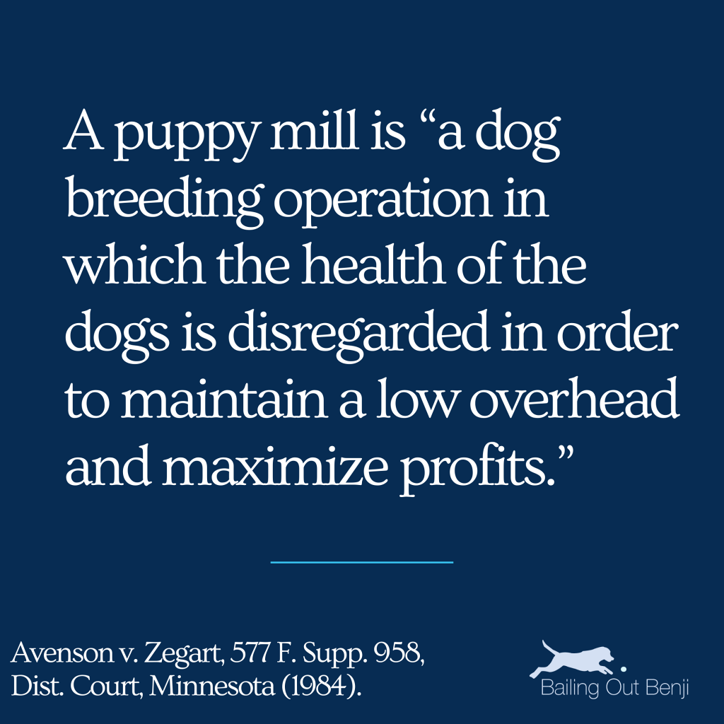 A puppy mill can be a small breeder that keeps dozens of animals in their home in conditions that could be considered inhumane.